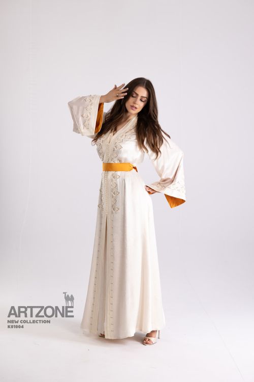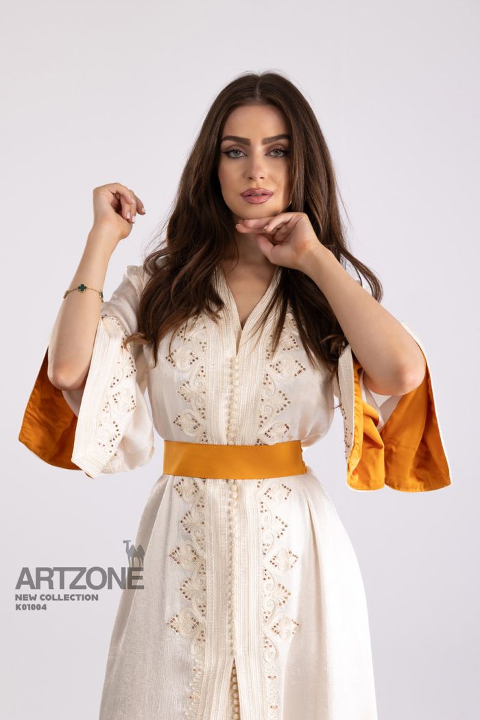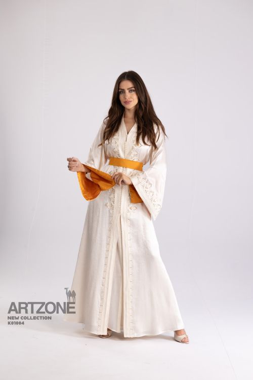 Elevate your style with our gold embroidery Kaftan that add a luxurious feel to the garment.