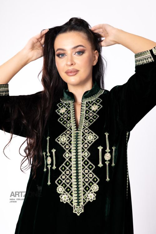 Elevate your style with our gold embroidery Kaftan that add a luxurious feel to the garment.